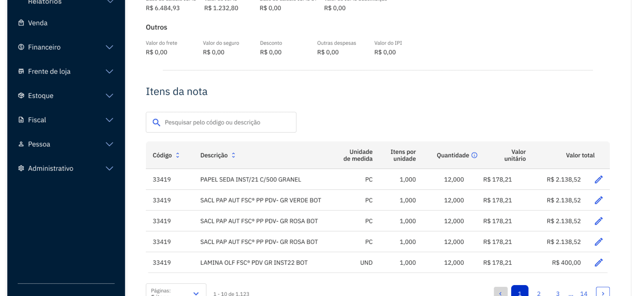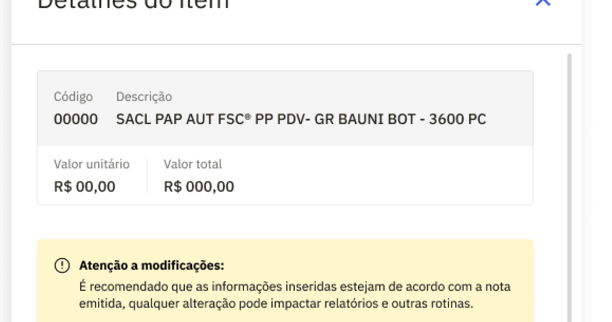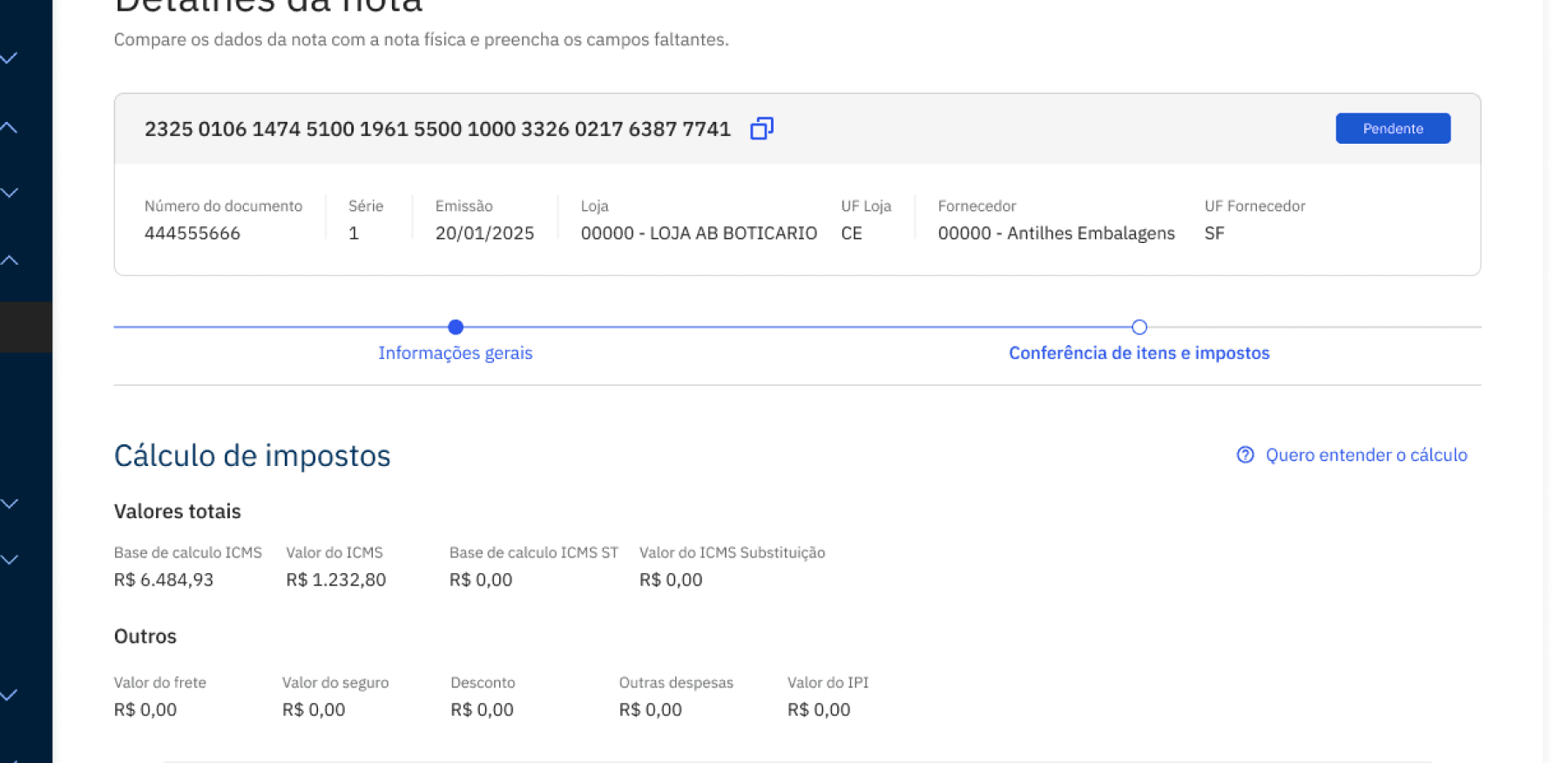 Layout confuso e sobrecarga cognitiva: Excesso de informações fiscais exibidas sem hierarquia adequada, dificultando a tomada de decisão.